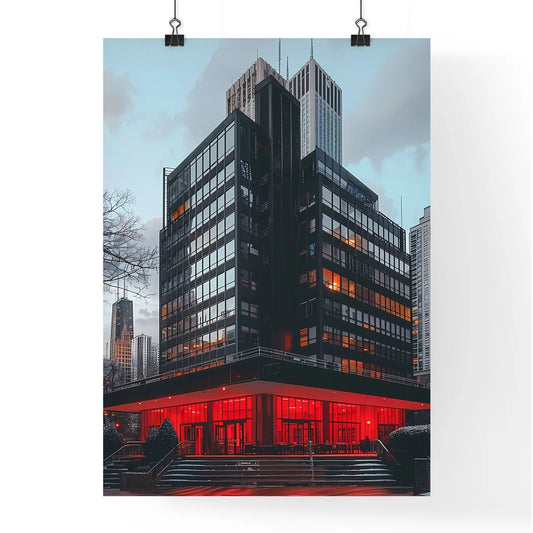 Bauhaus Inspired Painting: Abstract Building with Red Lights, Modern Art