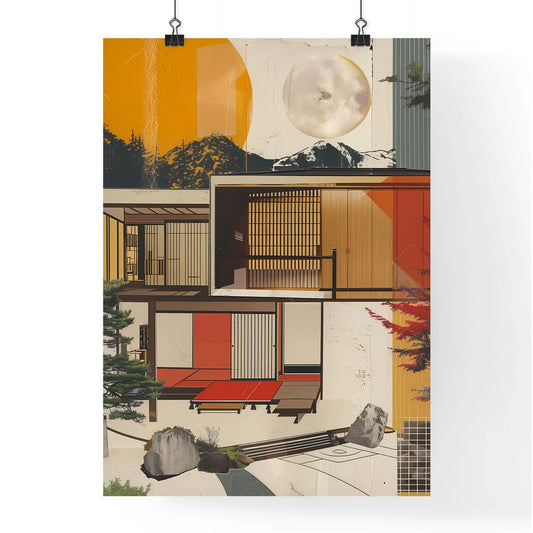 Art Deco Conceptual Collage: Japanese-Inspired Architectural Painting Describing a Vibrant House