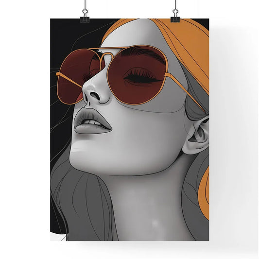 60s Art Poster Minimalistic Lineart Geometric Abstract Sunglasses Girl
