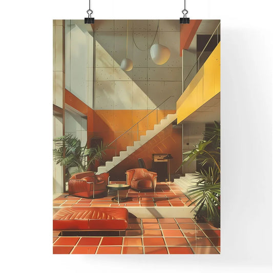 Bauhaus Living Room Interior 1980s Style Art Painting Stairs Chair Wall