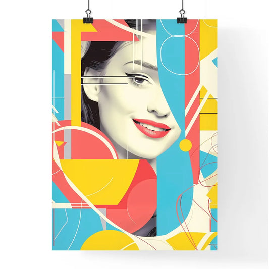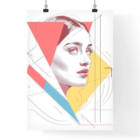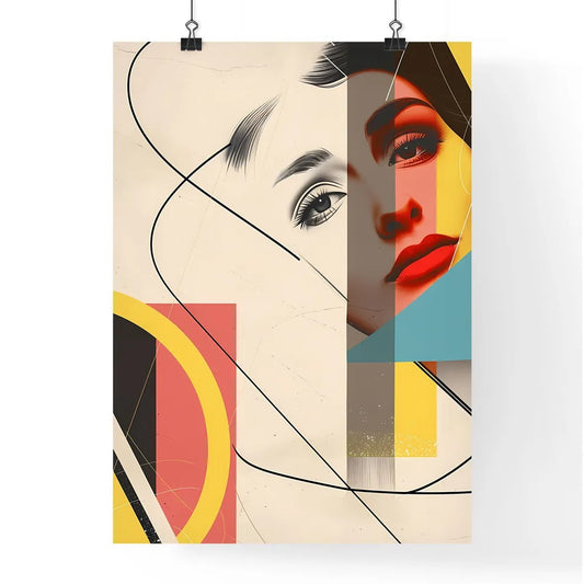 Fluid Geometry: Vibrant Face Painting on Danish Pastels, Collaged Elements & Puzzle-Like Neoclassical Background - Artistic Poster
