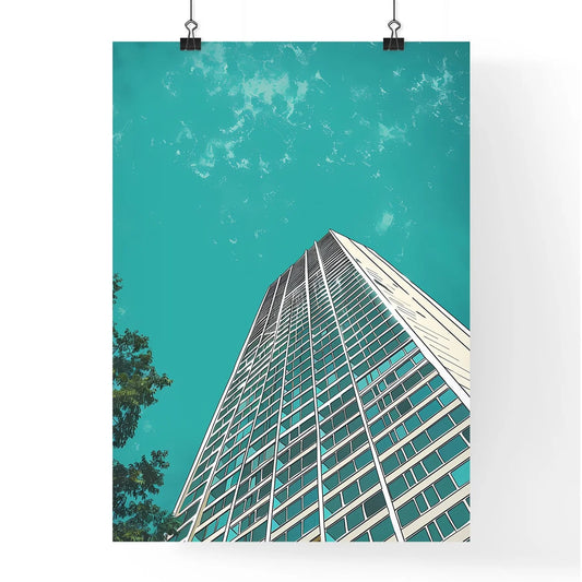 Vibrant and Modern Line Art Skyscraper with Aqua Background and Botanical Elements