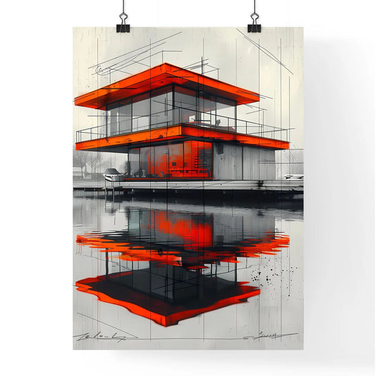 Modern Architectural Painting: Vibrant Orange and Red House with Nautical Reflections