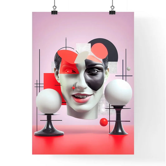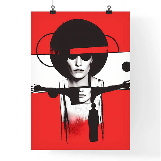 Geometric Abstract Art: Minimalistic 60s Girl Poster with Vibrant Geometric Shapes and Sunglasses