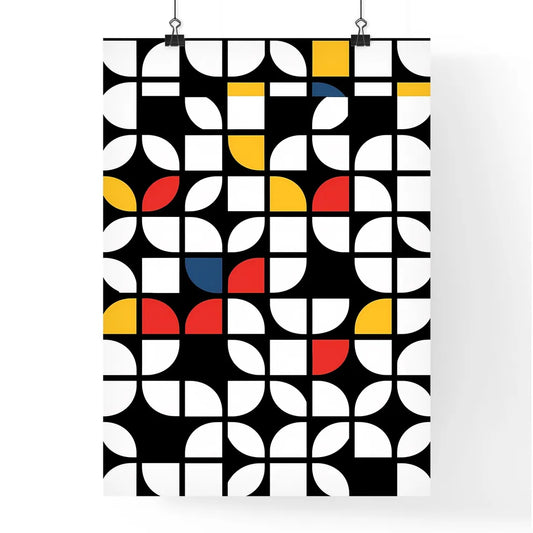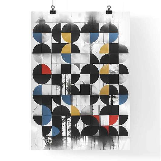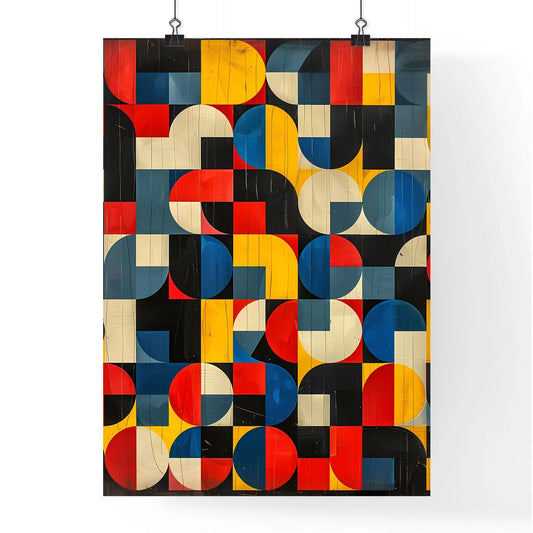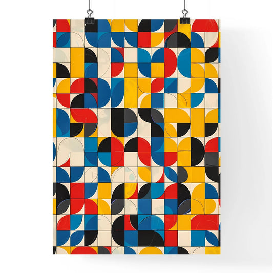 Abstract Art Print: Colorful Geometric Circles and Squares in Grid Pattern with Random 90-Degree Rotations