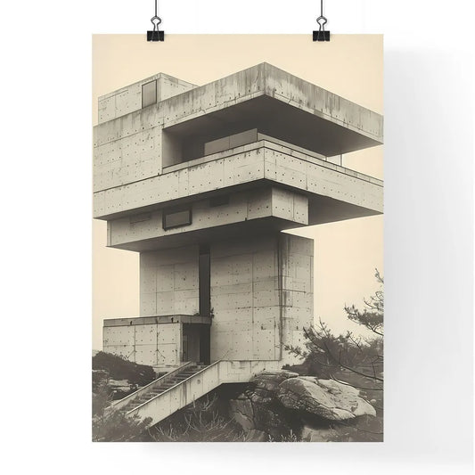 Minimalist Building Art - Vibrant Painting on a Scenic Hilltop