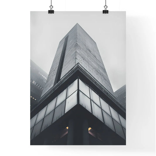 Vibrant minimalist art print featuring a striking urban cityscape from a unique low-angle perspective