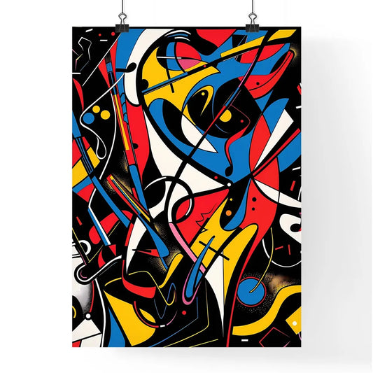 Midcentury Modern Minimalist Abstract Painting, Colorful Artwork with Black Background, Blue Note Style