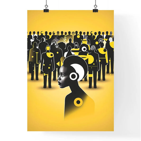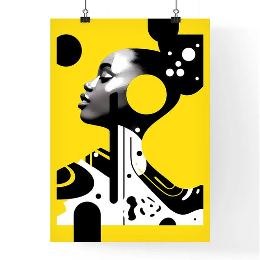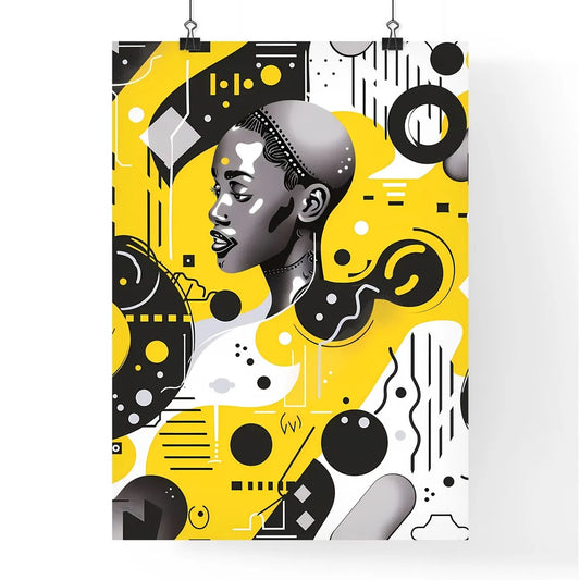 Vibrant Black and Yellow Election-Themed Artwork Featuring Female Figure and Geometric Shapes on Yellow Background