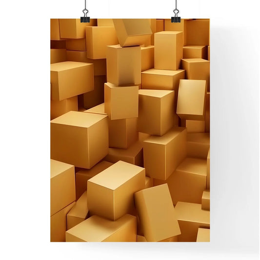 Abstract De Stijl Composition with Gold Rectangles and Squares in a Pile
