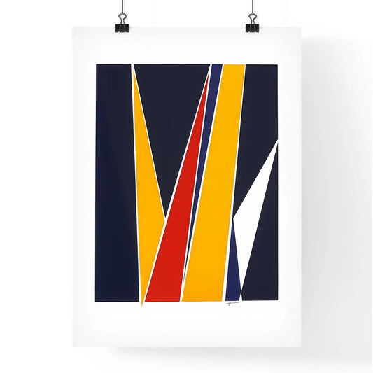Mid-Century Modernist Abstract Art Print: Colorful Minimalist Retro Poster with Triangles in White and Red