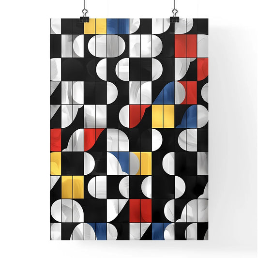 Colorful Geometric Abstract Art: Rotated Half Circles in Grid Formation Creating Vibrant Squares Pattern