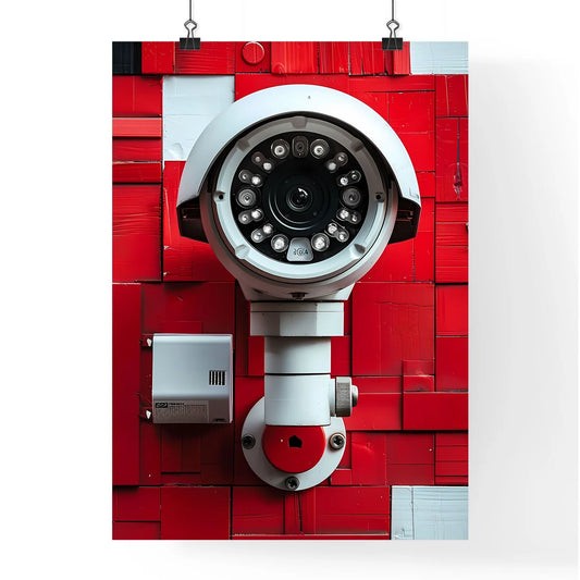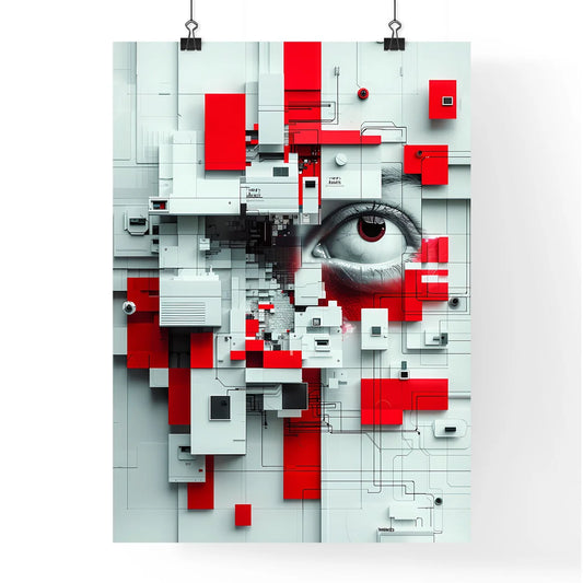 Modern Art Painting with Red and White Color Scheme Depicting an Eye Focus on the Artistic Aspect Alarm System Video Surveillance Theme