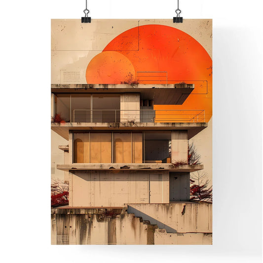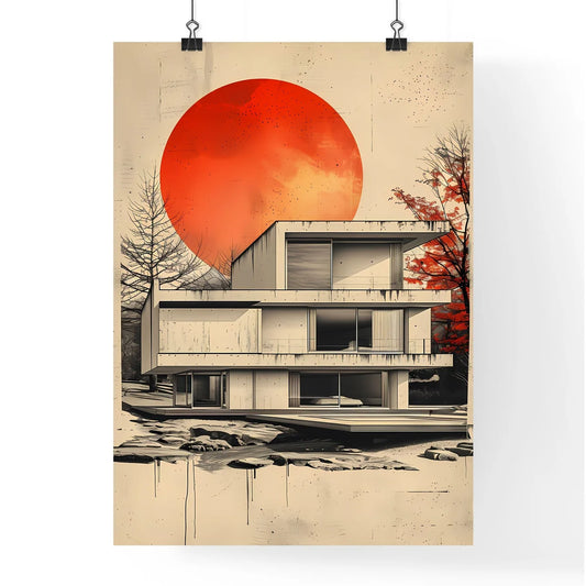 Modernist House Artwork: Sunlit Suburban Home Painting, Stalenhag-Style, Vibrant Art Deco Inspired