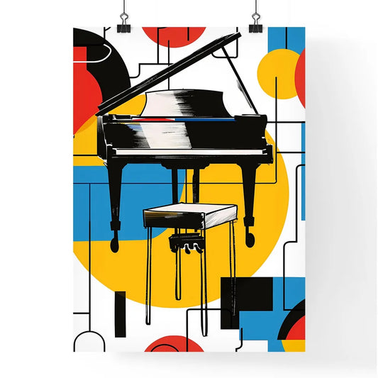 Vibrant 1960s Moderncore Indiecore Painting: Piano with Stool