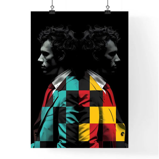 Minimalist Poster for a Broadway Crossword Murder Mystery Inspired by Moschino Fashion and Pee-wee's Playhouse Featuring a Suited Man