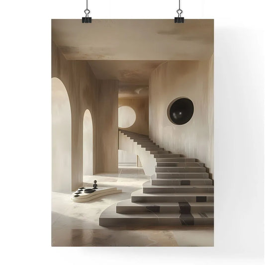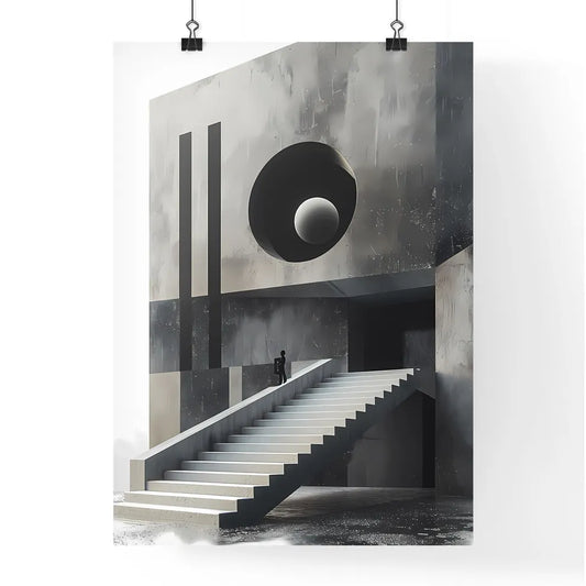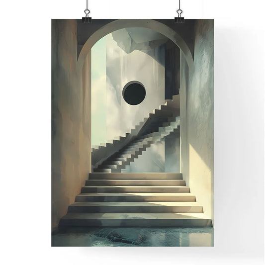Vibrant and Minimalist Style Painting: A Staircase Leading to a Round Hole