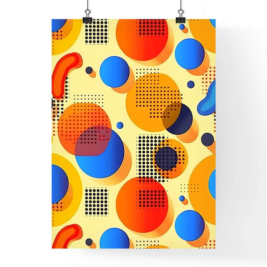 Colorful Retro Art Background, Orange Yellow Blue, Circles and Dots, Painting, Vibrant, Abstract