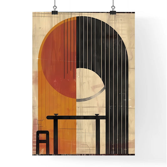 Modern Japandi Art Poster: Minimalist Painting Featuring Table and Chair in Vibrant Color Scheme
