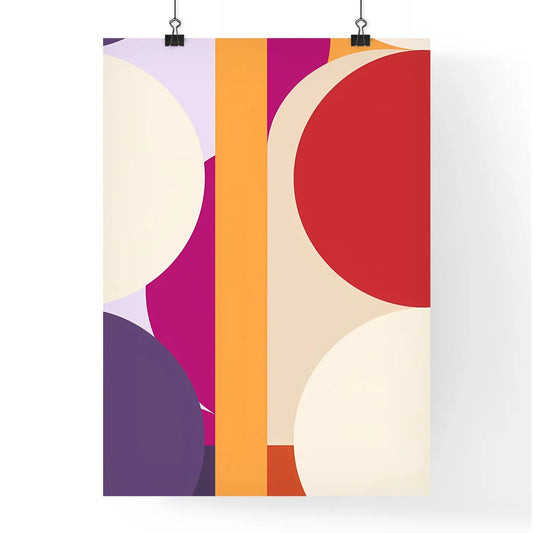 Abstract Bauhaus Geometric Artwork: Vibrant Circles and Curved Line with Red, Purple, Yellow, and Mint Colors