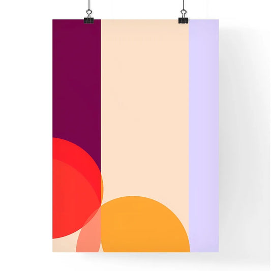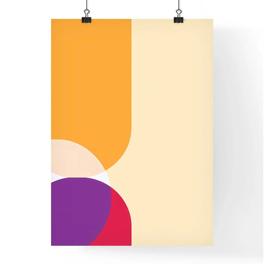 Abstract Geometric Bauhaus Artwork: Colorful Circles in Red, Purple, Yellow, Mint, No Lines, Art Focus, Yellow Background