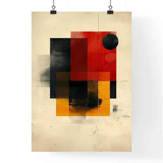 Bauhaus Art Geometric Abstract Painting Red Black Yellow Squares Black Circle
