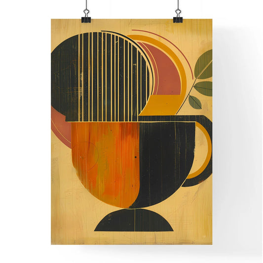 Minimalistic Painting: Vibrant Artwork with Japanese Influence, Featuring Simple Shapes and Decorative Leaf