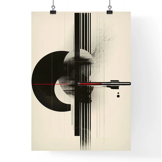 Minimalist Artwork: Geometric Black and Red Abstract Painting with Lines and Shapes
