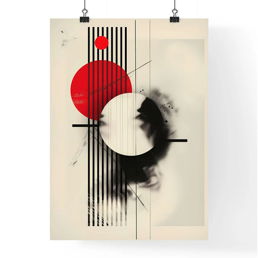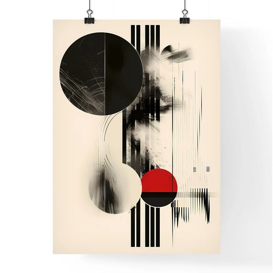Geometric Abstract Art, Minimalist Painting, Black and Red Circles, Lines