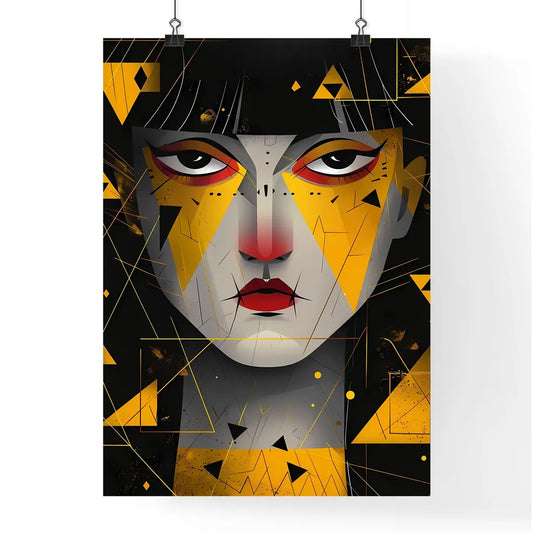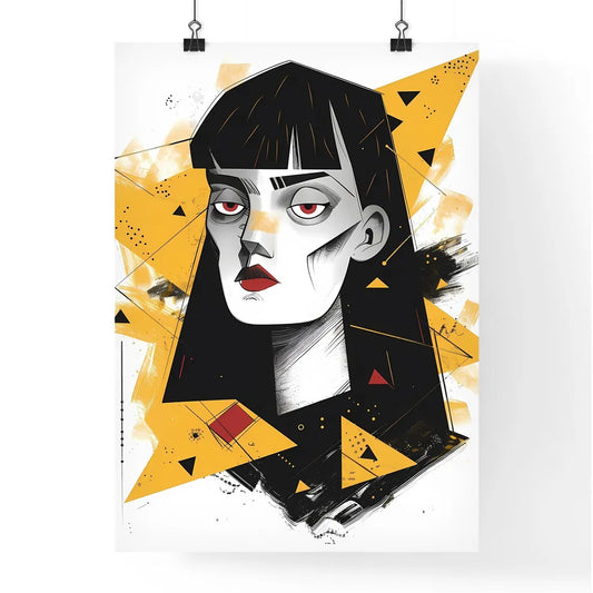Boldly Illustrated Cartoon Caricature of a Woman with Black Hair and Yellow Triangles