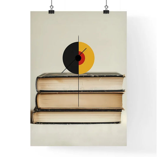 Minimalist Bauhaus Book Cover Art: Japanese-Style Stack of Books with Black and Yellow Circle