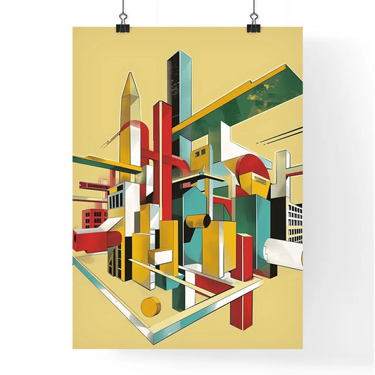 Vibrant Geometric Cityscape Minimalist Poster Style Artwork in High Definition