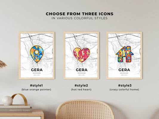 Gera Germany - Scandinavian Style City Map for Modern Home Decor