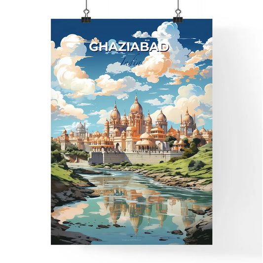 Ghaziabad City Skyline India Canvas Painting Art Blue Sky Castle River