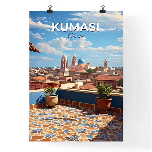 Ghanaian Art Painting of Buildings in Kumasi Cityscape Vivid Skyline in Africa