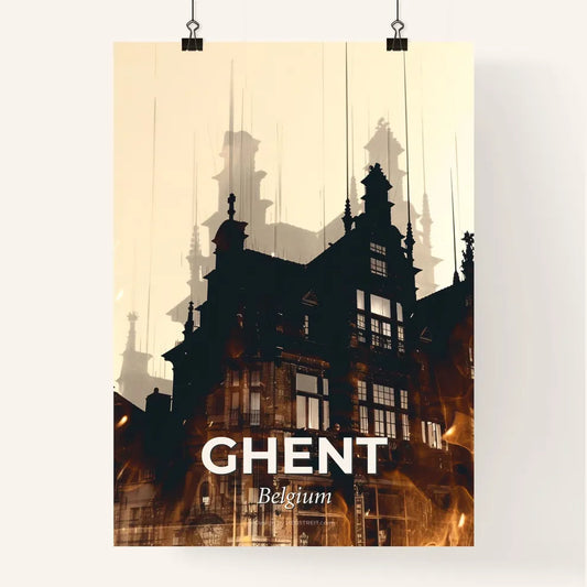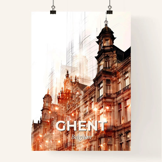 Ghent Skyline Double Exposure Art Poster - A building with many towers