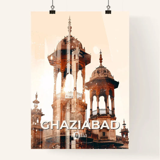 Ghaziabad Skyline Art Print: Local Icons, Bright Beige - A city with many buildings