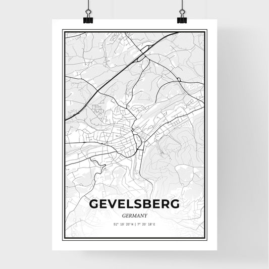 Gevelsberg Germany - Scandinavian Style City Map for Modern Home Decor