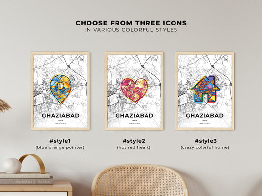 Ghaziabad India Vibrant Colorful Art Map Poster
