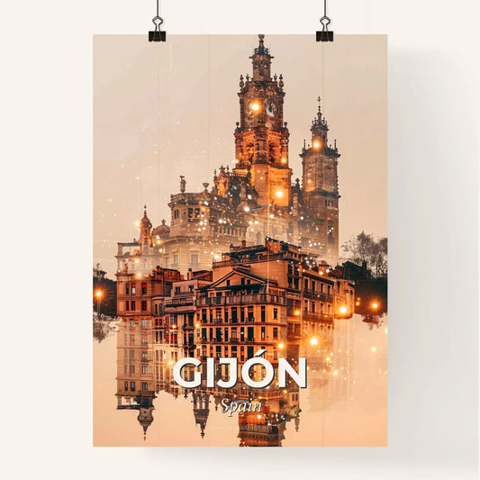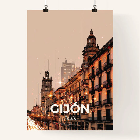 Gijón City Lights Skyline Art Poster - A building with a tower