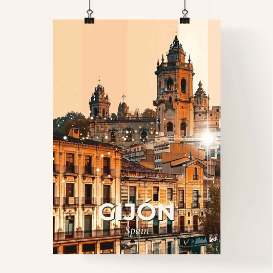 Gijon Spain Cityscape Icons Beige Poster - A city with a clock tower
