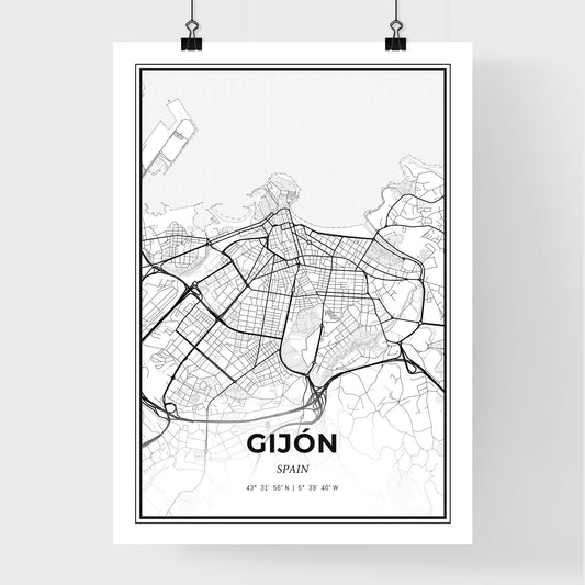 Gijón Spain - Scandinavian Style City Map for Modern Home Decor