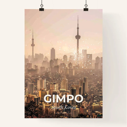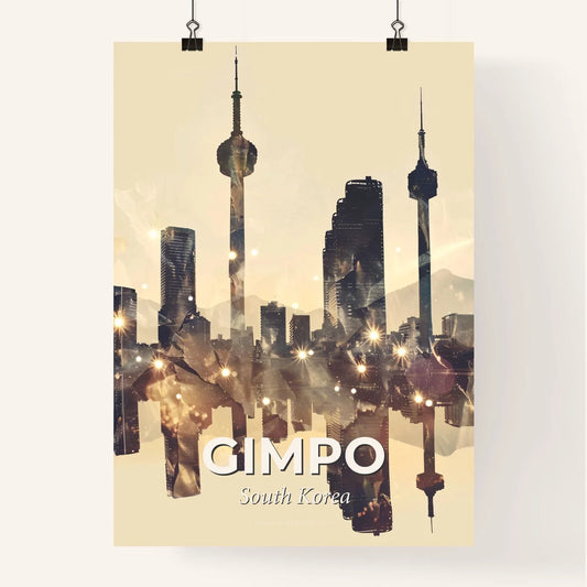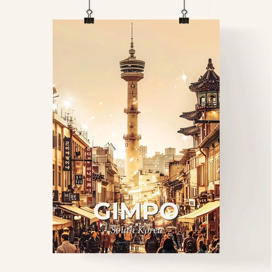 Gimpo Skyline Cityscape Composite Art Poster - A city street with a tall tower
