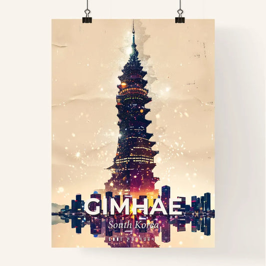 Gimhae City Lights Skyline Masterpiece Poster - A tall building with a tall tower in the middle of a city