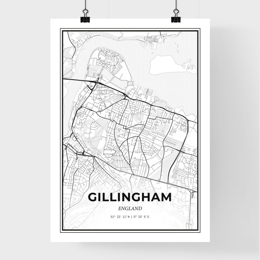 Gillingham England - Scandinavian Style City Map for Modern Home Decor