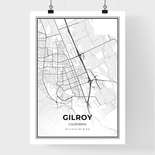 Gilroy California - Scandinavian Style City Map for Modern Home Decor