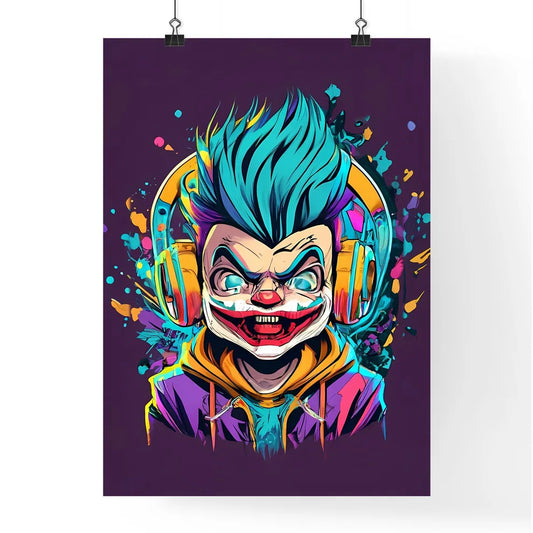 A Cartoon Of A Clown Wearing Headphones Art Print