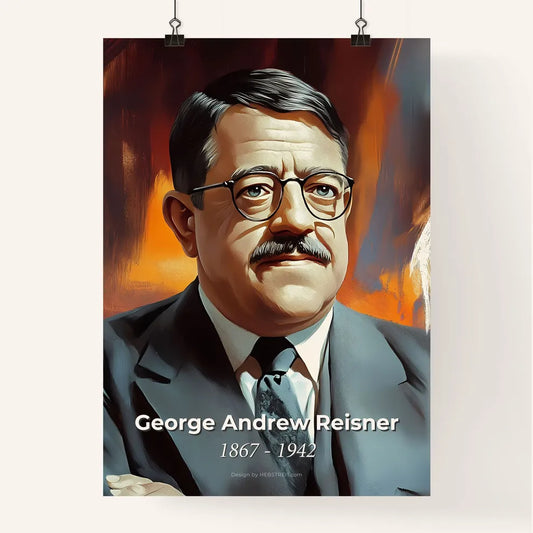 Portrait of George Andrew Reisner, 1867 - 1942. Impressionistic painting of a man with glasses and a mustache.