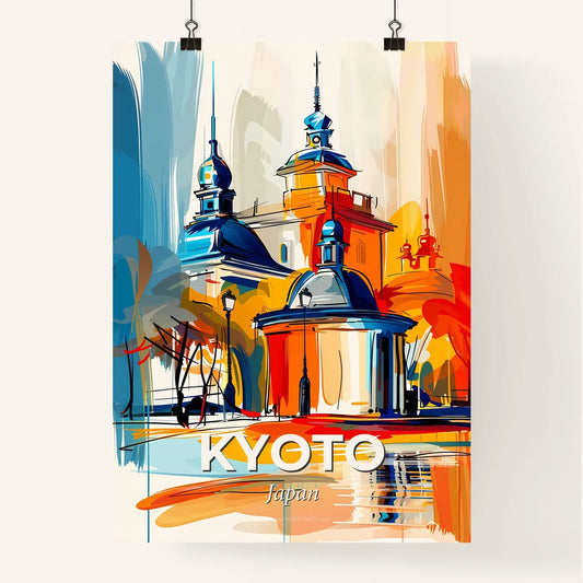 Vibrant Kyoto, Japan - A Painting Of A Building With A Colorful Background