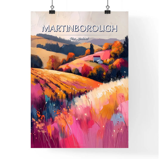 Martinborough, New Zealand - Art print of a painting of a field of flowers and trees